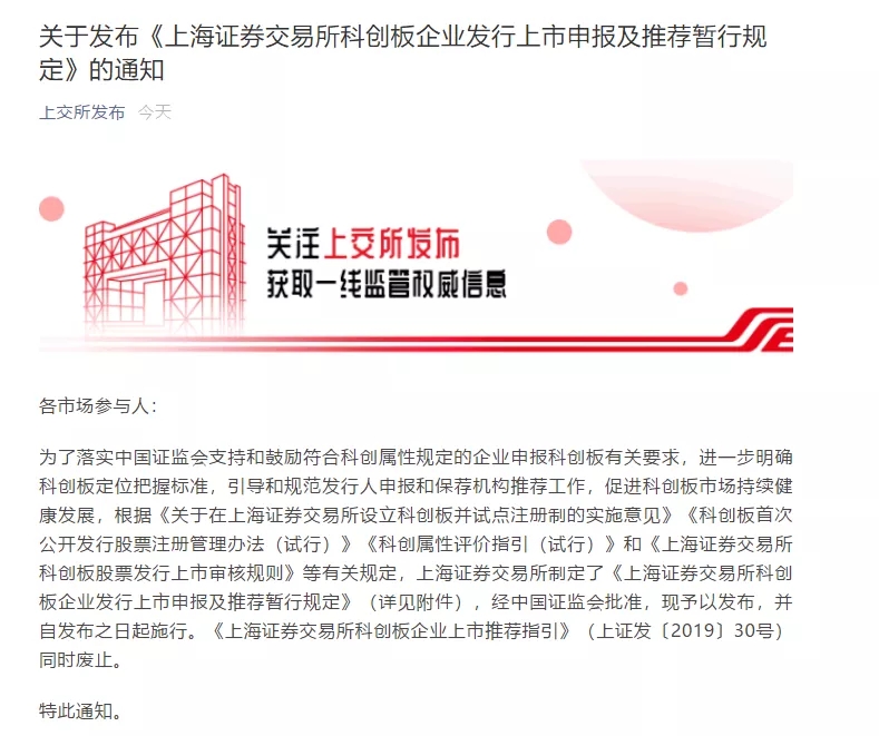 事实上,,,,此前上交所曾制订《科创板股票刊行上市审核规则》等多个营业规则,,,,形成了笼罩推荐、申报、受理、审核、刊行承销等较为完整的规则系统。。。。在此次《暂行划定》宣布后,,,,原有的《上海证券生意所科创板企业上市推荐指引》予以废止;;;;;;;上交所其他营业规则和审核问答中有关科创板定位的内容与《暂行划定》纷歧致的,,,,应以《暂行划定》为准。。。。