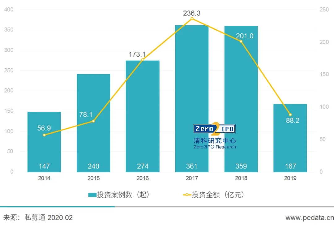 凭证清科研究中心《2020年中国医疗器械行业投融资剖析报告》,,,2014-2019年,,,中国医疗器械行业累计披露投资案例1548起,,,披露投资金额833.6亿元。。。。其中,,,2017年是中国医疗器械行业投资大爆发的一年,,,投资案例数、投资金额双双抵达历年峰值,,,其中披露投资案例361起,,,同比增添31.8%,,,投资金额达236.3亿元,,,同比增添36.5%。。。。2018年,,,随着投资市场逐渐趋于理性,,,投资者在对投资标的的选取上变得审慎,,,越发倾向于投资真正具备手艺壁垒的立异企业。。。。受整体经济情形的影响,,,2019年中国医疗器械行业投资显着下滑,,,披露投资案例数和投资金额划分同比下降了53.5%、56.1%。。。。