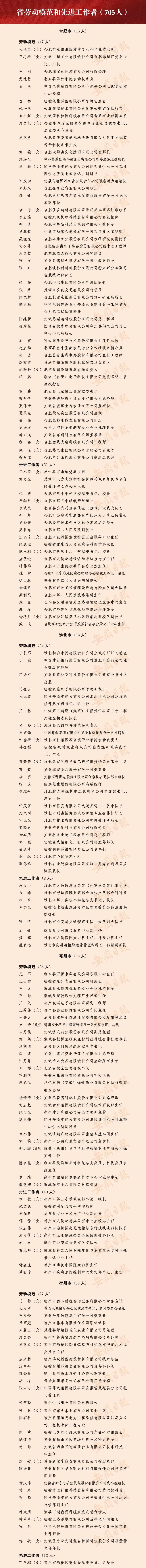 2022年安徽省劳动模范、先进事情者和先进整体名单